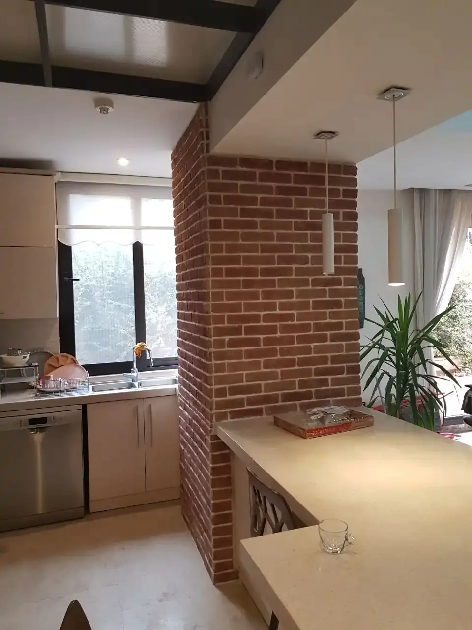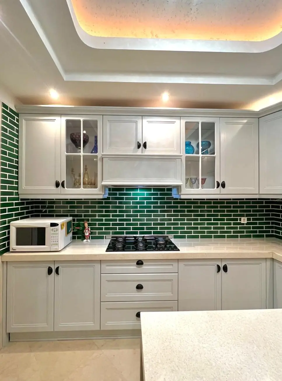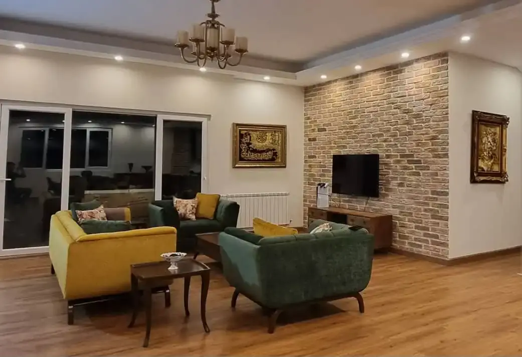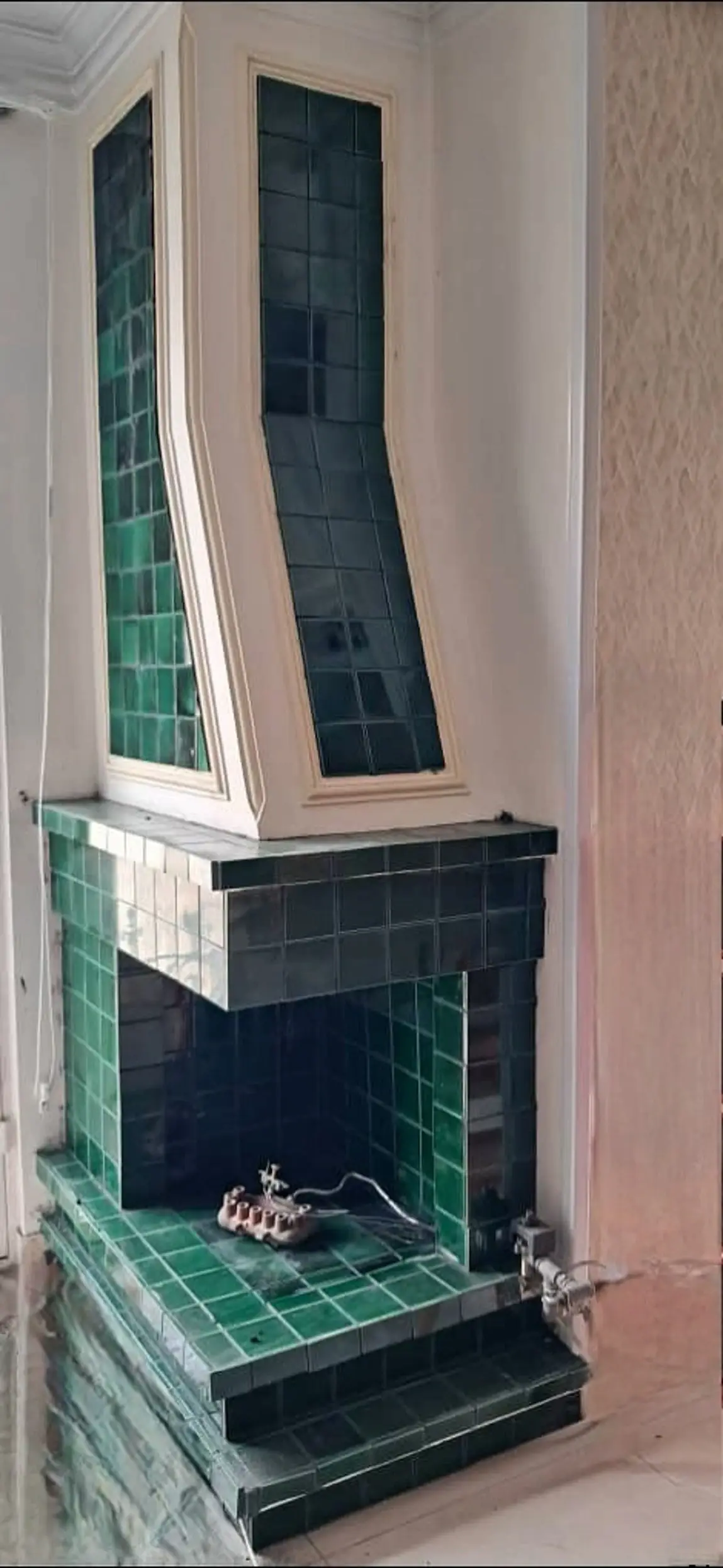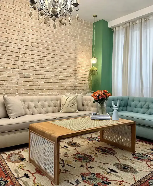 کاشی دستساز رنگ سبز رولکسی ترکیبی با آجر چینش جناقی