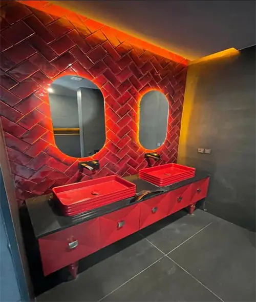 کاشی دستساز مترویی قرمز اسیدشور چینش جناقی