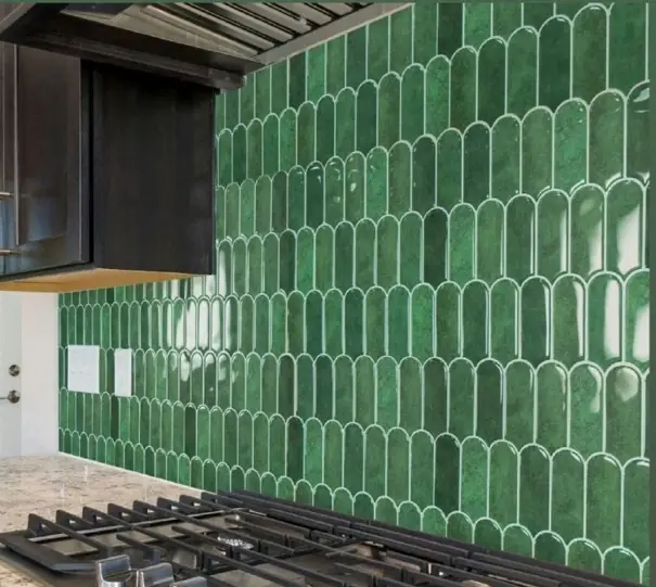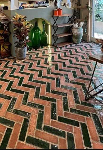 کاشی دستساز رنگ سبز رولکسی اسیدشور چینش جناقی و کاشی 20*20 طرحدار