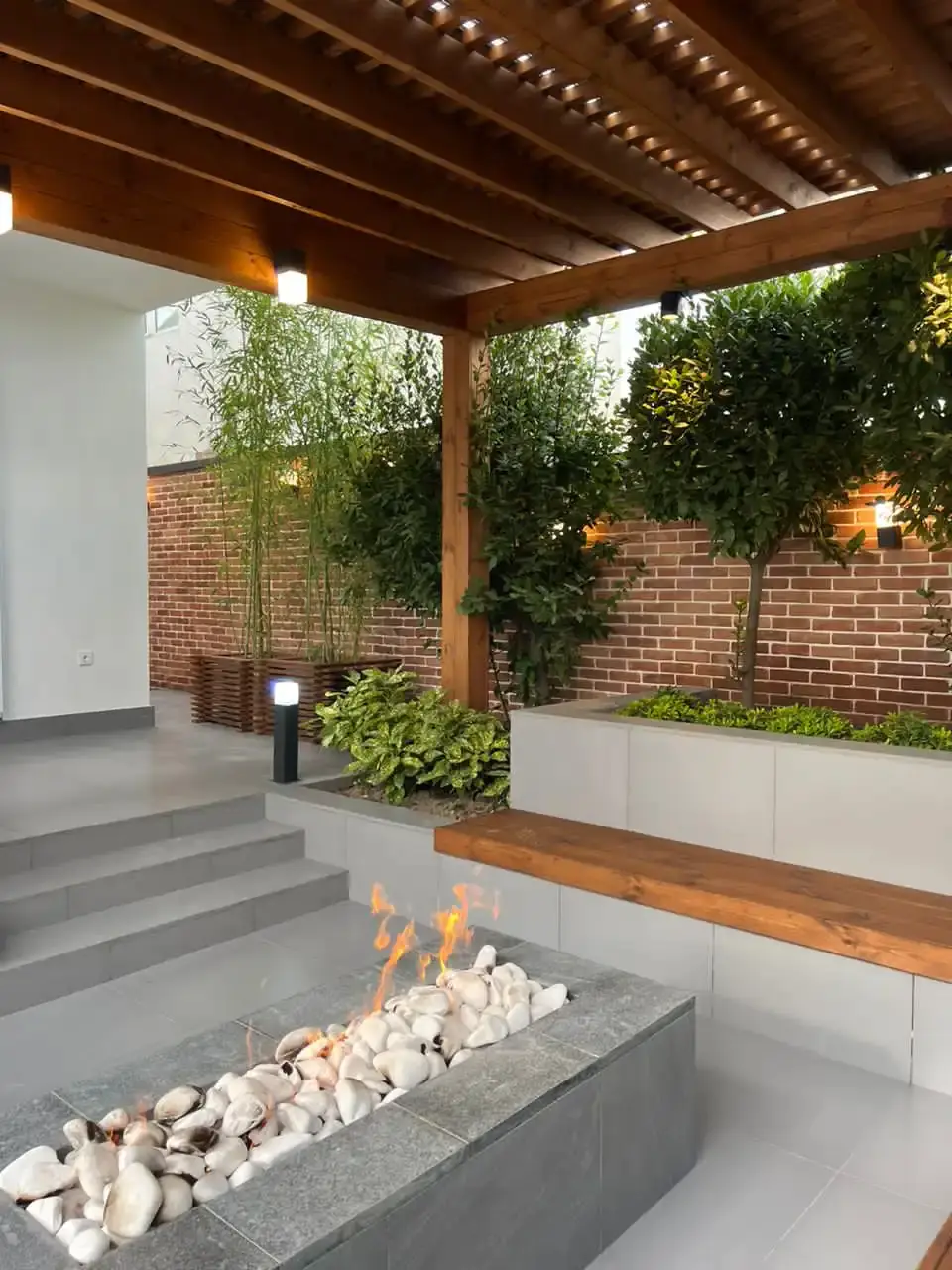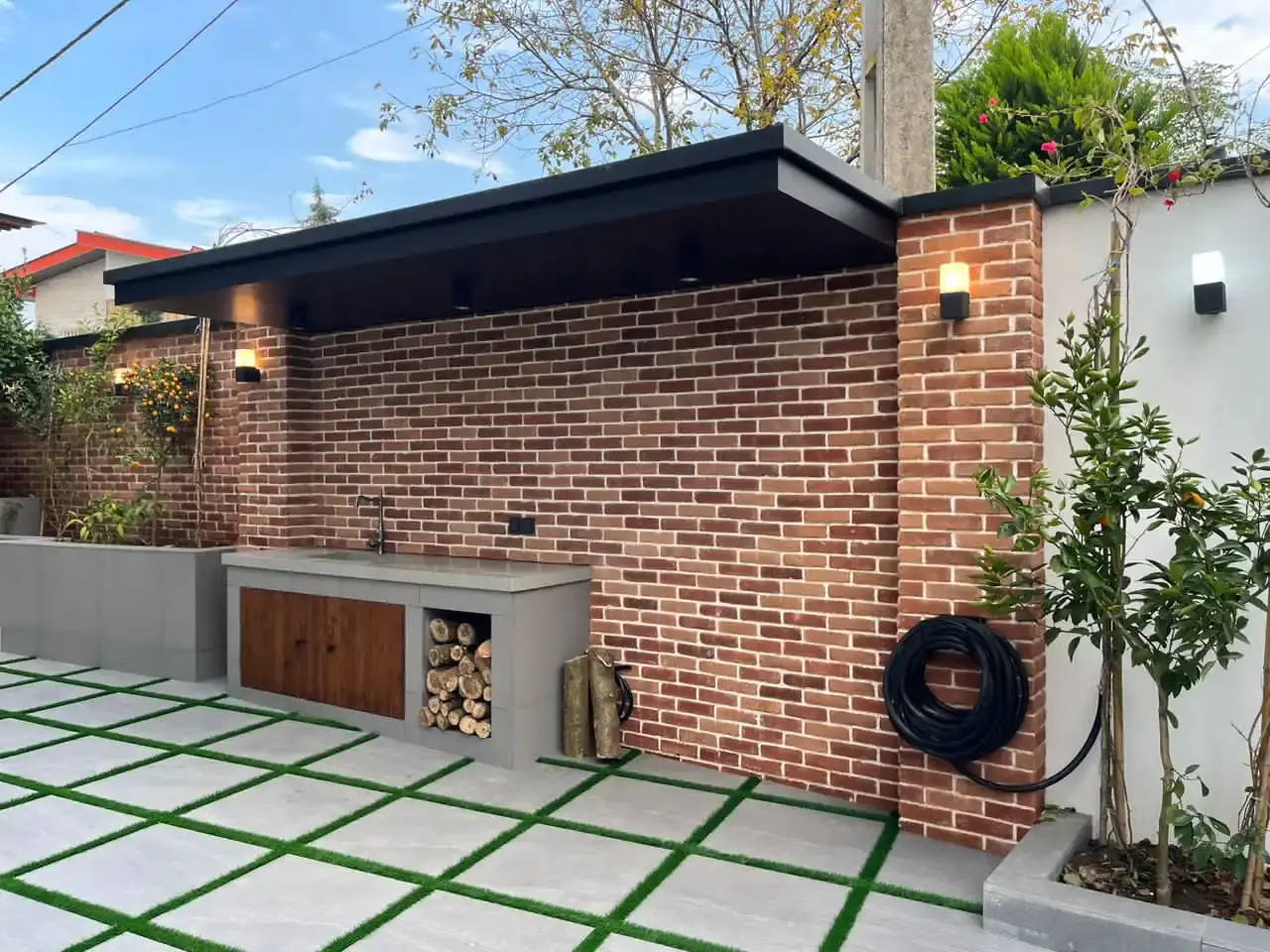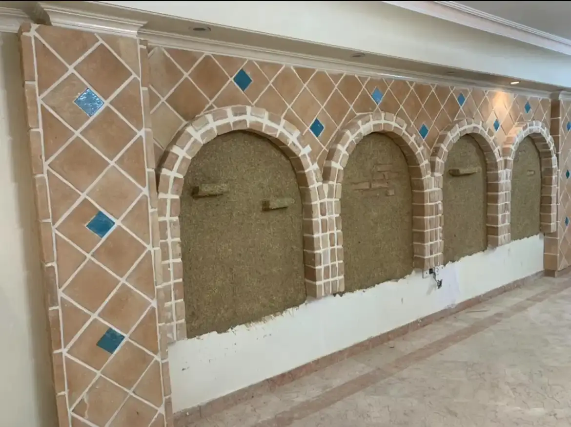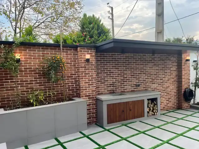 کاشی دستساز طرحدار ترکیبی با آجر کف